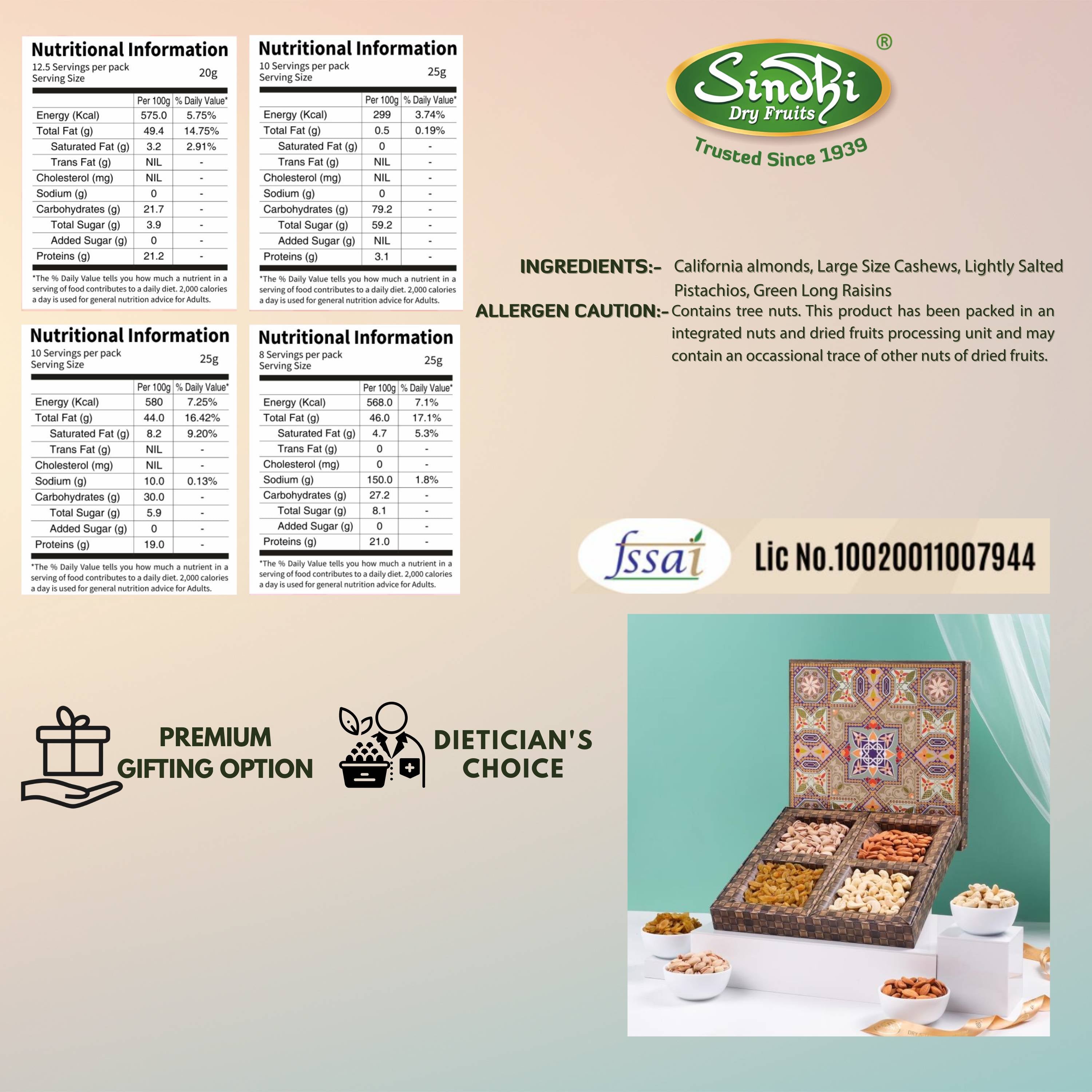 सिंधी ड्राई फ्रूट्स के साथ अपने उपहार देने के अनुभव को और भी बेहतर बनाएँ। हमारे प्रीमियम गिफ्ट पैक, जिनमें 400 ग्राम बादाम और 400 ग्राम काजू शामिल हैं, दुल्हन की सजावट की पैकेजिंग, कॉर्पोरेट गिफ्ट पैक और शादी के उपहारों के लिए एकदम सही हैं। चाहे कॉर्पोरेट गिफ्टिंग हो या कोई खास मौका, हमारे खूबसूरती से तैयार किए गए ड्राई फ्रूट्स एक बेहतरीन उपहार हैं। शानदार उपहार विकल्पों के लिए ऑनलाइन खरीदारी करें या सेंट्रल मार्केट, लाजपत नगर में हमसे मिलें। 🎁✨