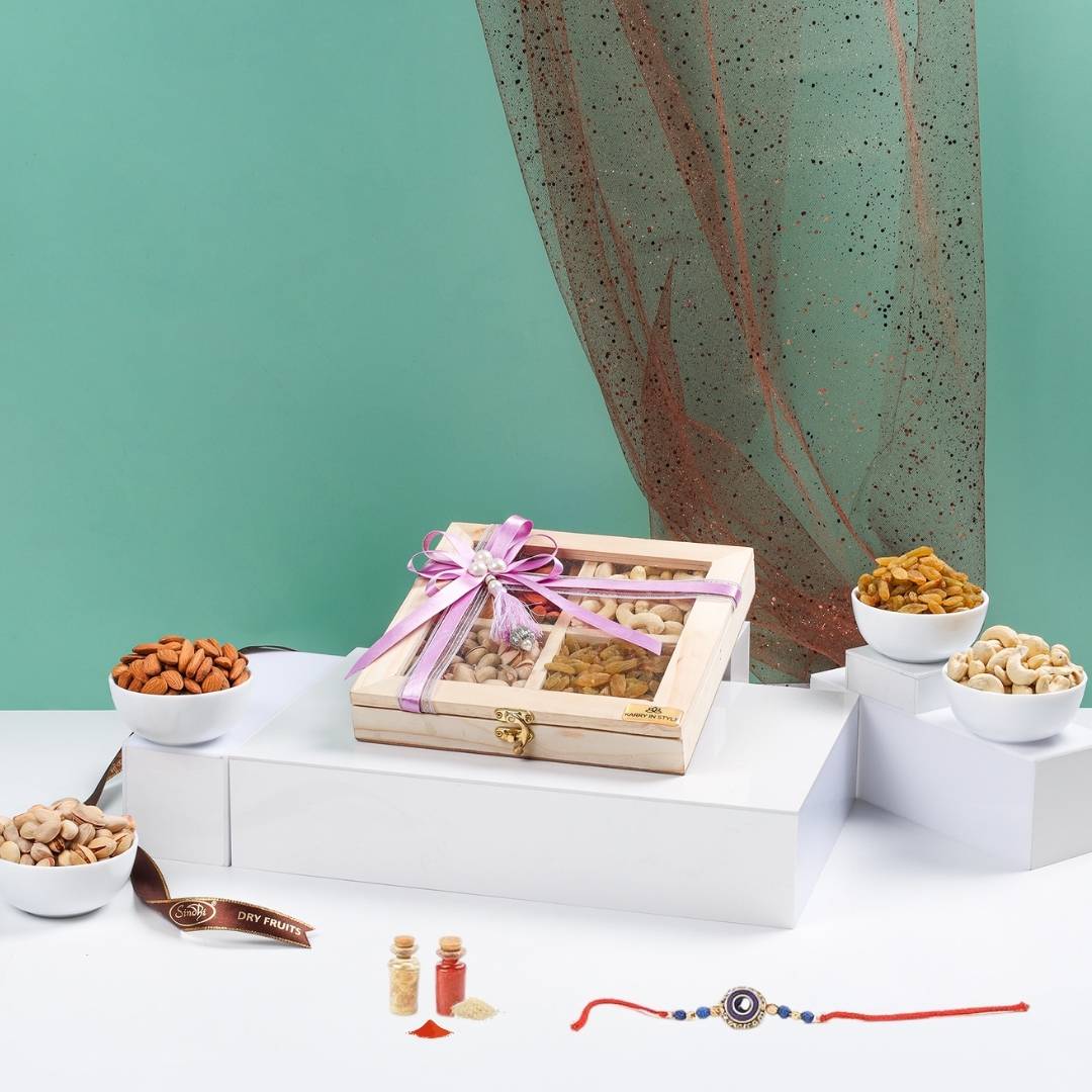 रक्षाबंधन के लिए प्रीमियम उपहार बॉक्स, 550 ग्राम कुल सामग्री