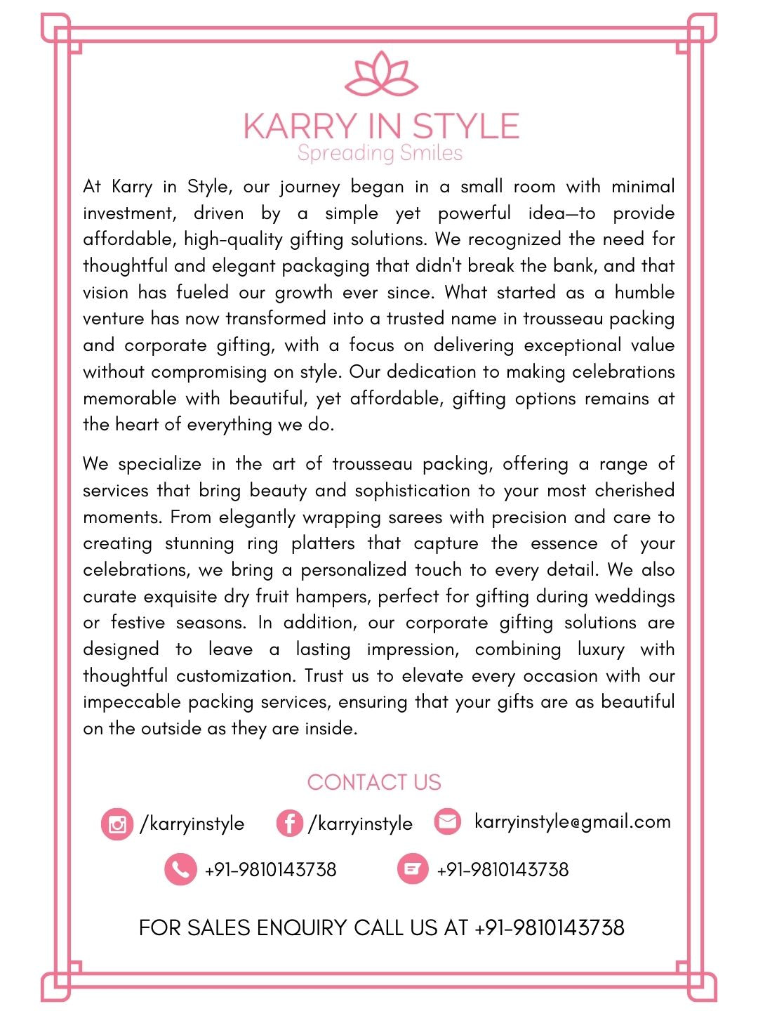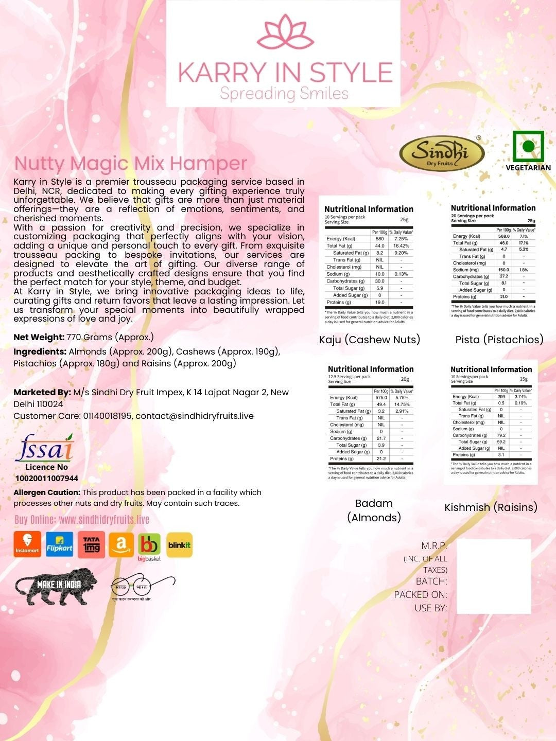 सिंधी ड्राई फ्रूट्स के साथ अपने उपहार देने के अनुभव को और भी बेहतर बनाएँ। बादाम और काजू से भरपूर हमारे प्रीमियम गिफ्ट पैक, दुल्हन के लिए उपहार पैकेजिंग, कॉर्पोरेट गिफ्ट पैक और शादी के उपहारों के लिए एकदम सही हैं। चाहे कॉर्पोरेट गिफ्टिंग हो या कोई खास मौका, हमारे खूबसूरती से तैयार किए गए ड्राई फ्रूट्स एक बेहतरीन उपहार हैं। शानदार उपहार विकल्पों के लिए ऑनलाइन खरीदारी करें या सेंट्रल मार्केट, लाजपत नगर में हमसे मिलें। 🎁✨