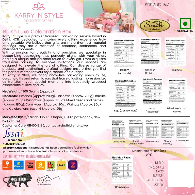 रक्षाबंधन के लिए प्रीमियम उपहार बॉक्स, 1.305 किलोग्राम शुद्ध सामग्री