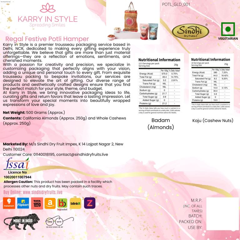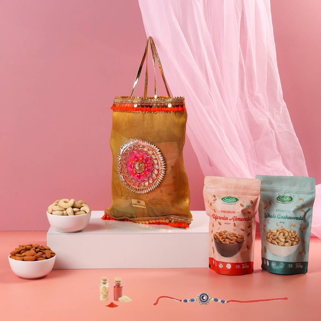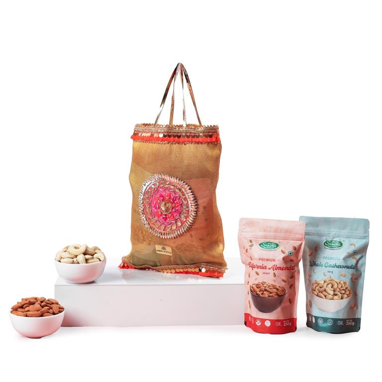 रक्षाबंधन के लिए प्रीमियम उपहार पोटली, 500 ग्राम कुल सामग्री