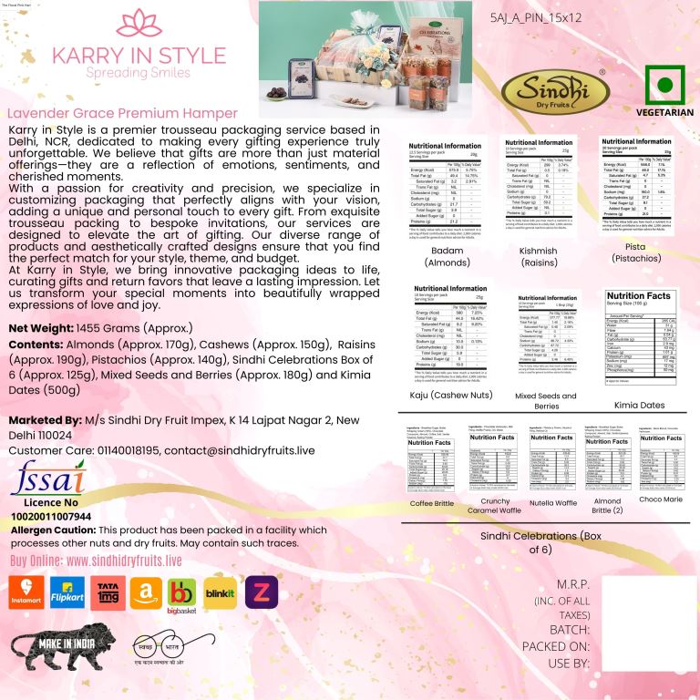 रक्षा बंधन के लिए प्रीमियम गिफ्ट हैम्पर्स, 1.460 किलोग्राम कुल सामग्री