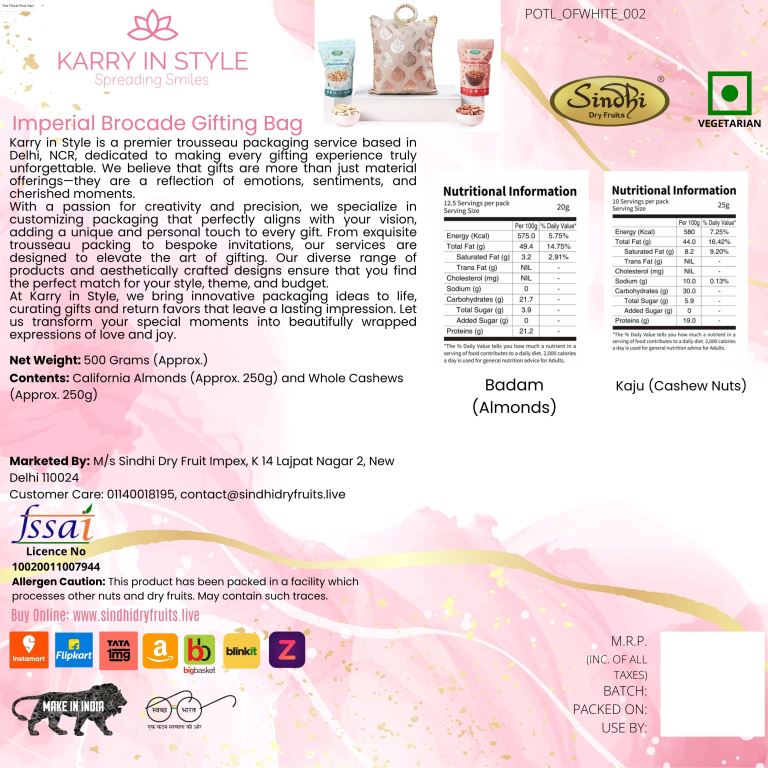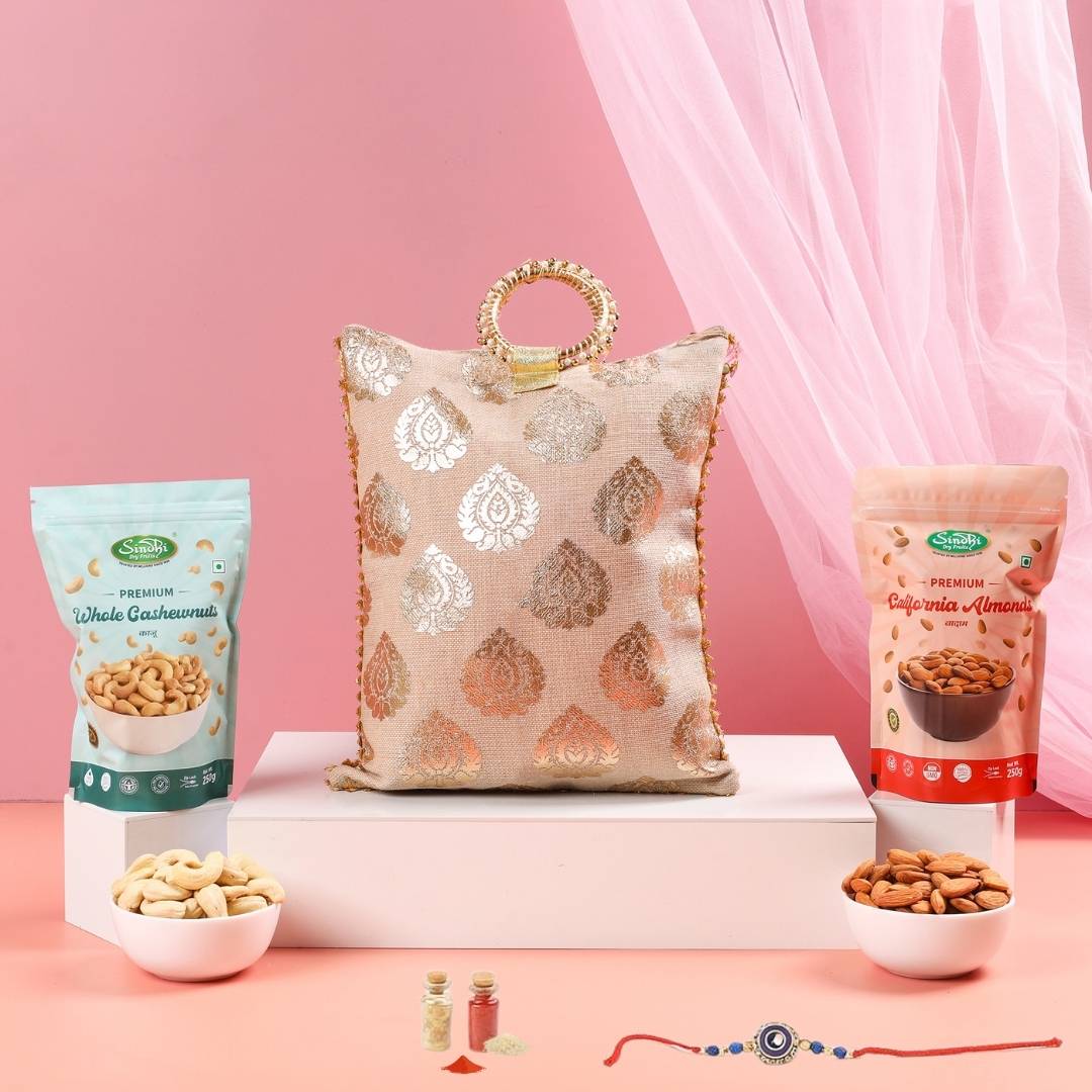 रक्षाबंधन के लिए प्रीमियम उपहार पोटली, 250 ग्राम कुल सामग्री
