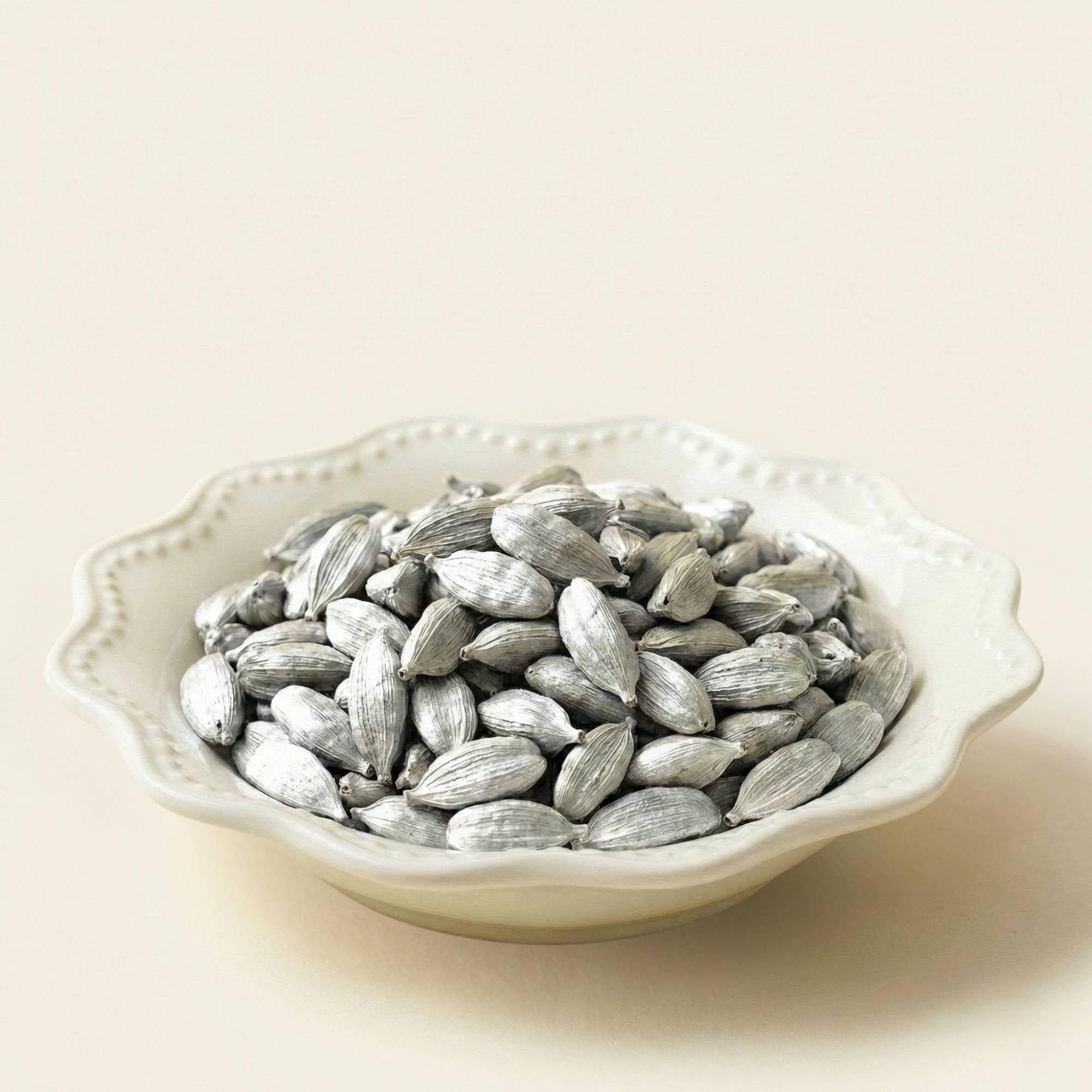 [सिल्वर इलायची के नाम से जाना जाता है]: सिंधी ड्राई फ्रूट्स सिल्वर कोटेड इलायची को माउथ फ्रेशनर के रूप में भी इस्तेमाल किया जाता है।