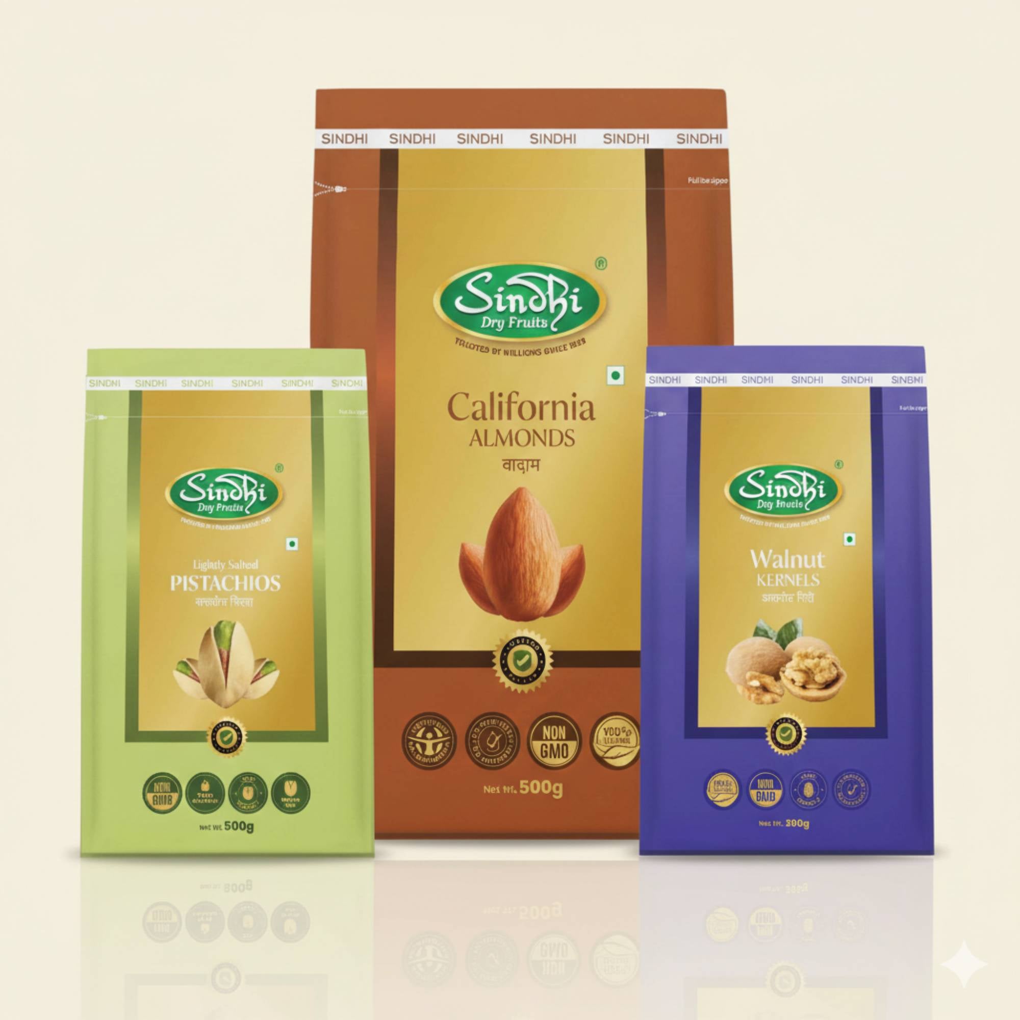 Elevate your wellness journey with Sindhi Dry Fruits Protein Power Combo—an expertly curated pack of 500g California Almonds, 500g Lightly Salted Pistachios, and 250g Akhrot Giri, totaling 1,250g. California almonds are rich in vitamin E, healthy fats, and protein for sustained energy and improved heart health. Lightly salted pistachios supply fiber, minerals, and antioxidants, supporting metabolism and keeping you fuller for longer. Akhrot Giri (walnuts) provide brain-boosting omega-3s, supporting cognitive sharpness and stamina. Perfect for snacking, meal additions, or gifting, this trio fosters holistic nourishment for both body and mind.